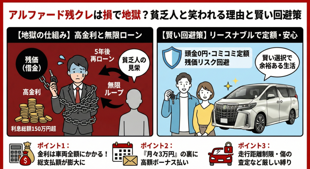 アルファード残クレは損で地獄?貧乏人と笑われる理由と賢い回避策