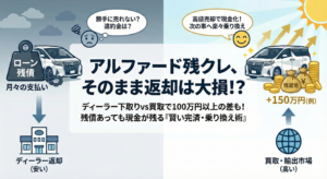 残クレの最大のリスクは、数年後の市場価格が暴落して借金が残る「残価割れ」です。アルファードはリセールが良いと言われていますが、モデルチェンジや輸出規制の変更などで相場が急落するリスクは常にあります。